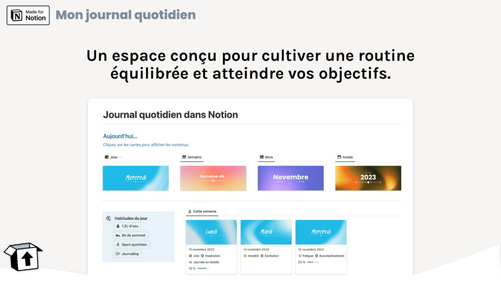 Votre vie quotidienne mérite d'être capturée, organisée et célébrée, et c'est précisément ce que ce modèle Notion vous permet d’accomplir.