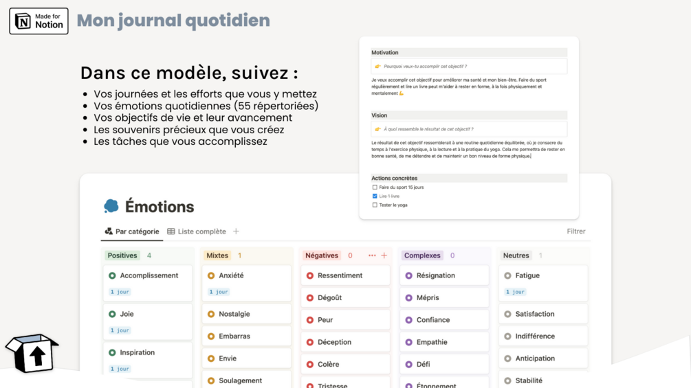 Votre vie quotidienne mérite d'être capturée, organisée et célébrée, et c'est précisément ce que ce modèle Notion vous permet d’accomplir.